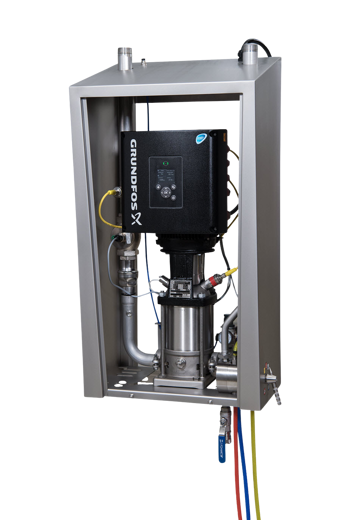 MainstationsWall-mounted cleaning station with a built-in pump to supply itself and connected satellites with pressurized water.
